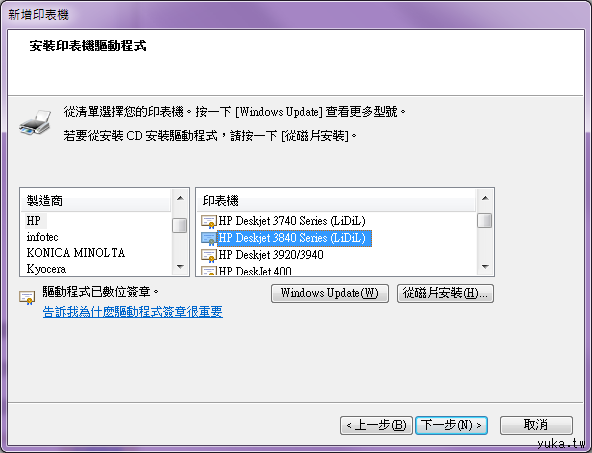 - 這邊用 HP Deskjet 3845 為例子,直接選 HP Deskjet 3840 Series 的驅動程式